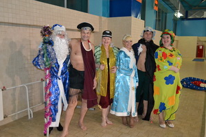 Организаторы - работники бассейна и народный театр г. Билибино под руководством Коханович О.Ф. напомнили участникам о том, как проходили новогодние представления в их детстве. Присутствующие участники и зрители звали деда Мороза, зажигали елочку, водили хороводы в воде и на суше. А также танцевали в воде, соревновались в эстафетах, играли с мячом. Ни один из участников не был обделен призами и подарками.