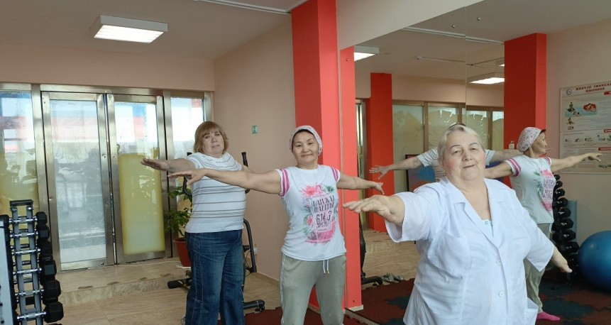 Коллектив с удовольствием выполнил упражнения, зарядился энергией на весь день!